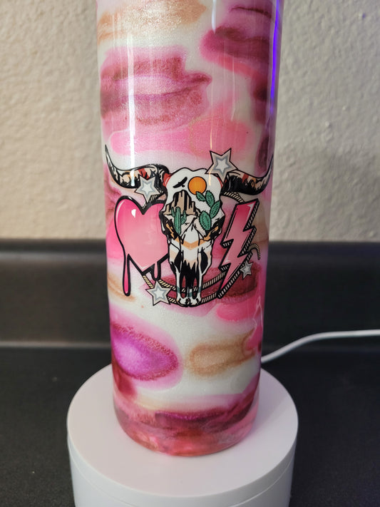 Cowgirl Style w/skull. Shades of pink, brown, pearl white. READY TO SHIP.